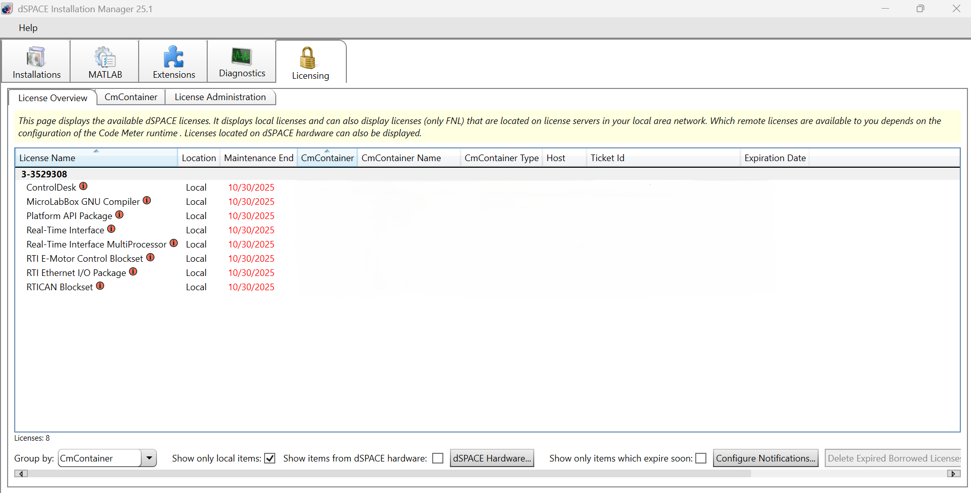 It is necessary for the License dongle to be connected with the computer to operate any dSPACE software (like ControlDesk). Before we could use the software, the License dongle will decrypt the modules / submodules in the software for which we have obtained license for. You will know which products you have license for through this option.