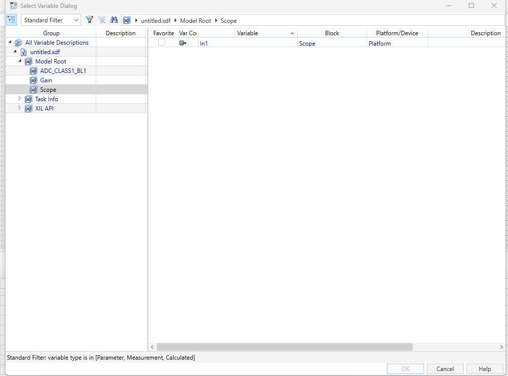 Then double click on your .sdf file name , then double click on Model Root then select which ever signal you want to measure. Since I am interested in Scope data, I am selecting Scope.